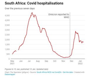 New case numbers initially skyrocketed in South Africa to an all-time high peak, but then collapsed equally quickly as the first chart below shows, with the second chart showing hospitalisation numbers rolling over far below previous highs:
